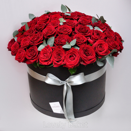 Большая шляпная коробка из 101 красной розы.