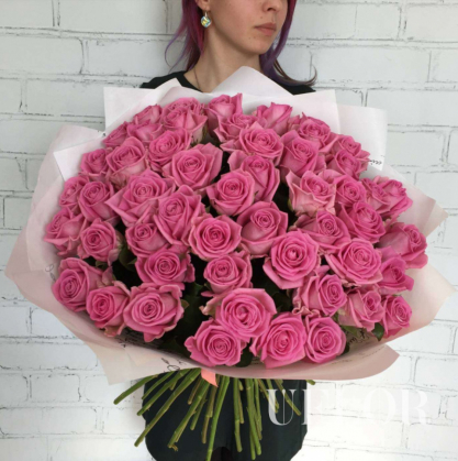 51 розовая роза в упаковке | Купить в Одинцово