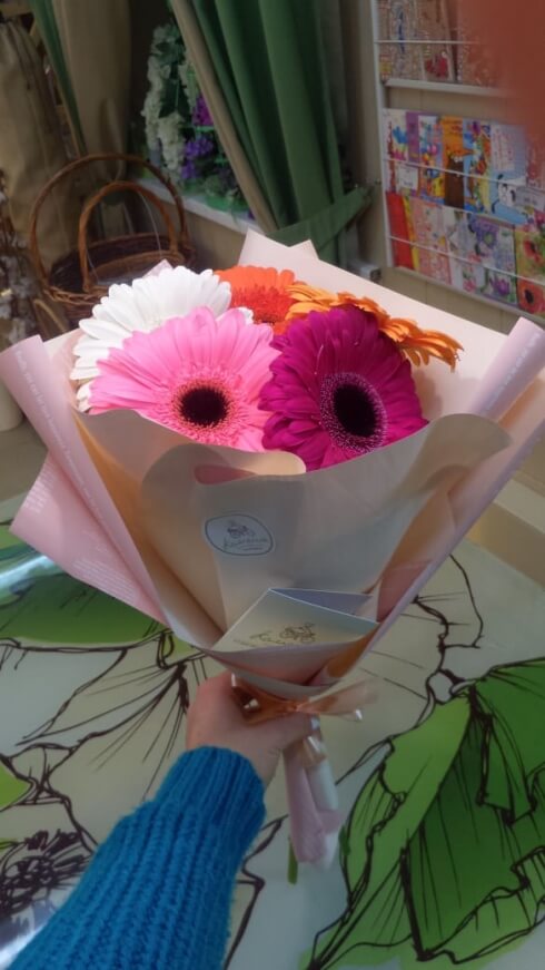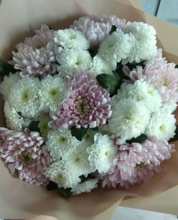 Заказывал букет "Хризантемы и герберы" увеличенный. В итоге букет выглядел даже лучше, чем ожидалось!