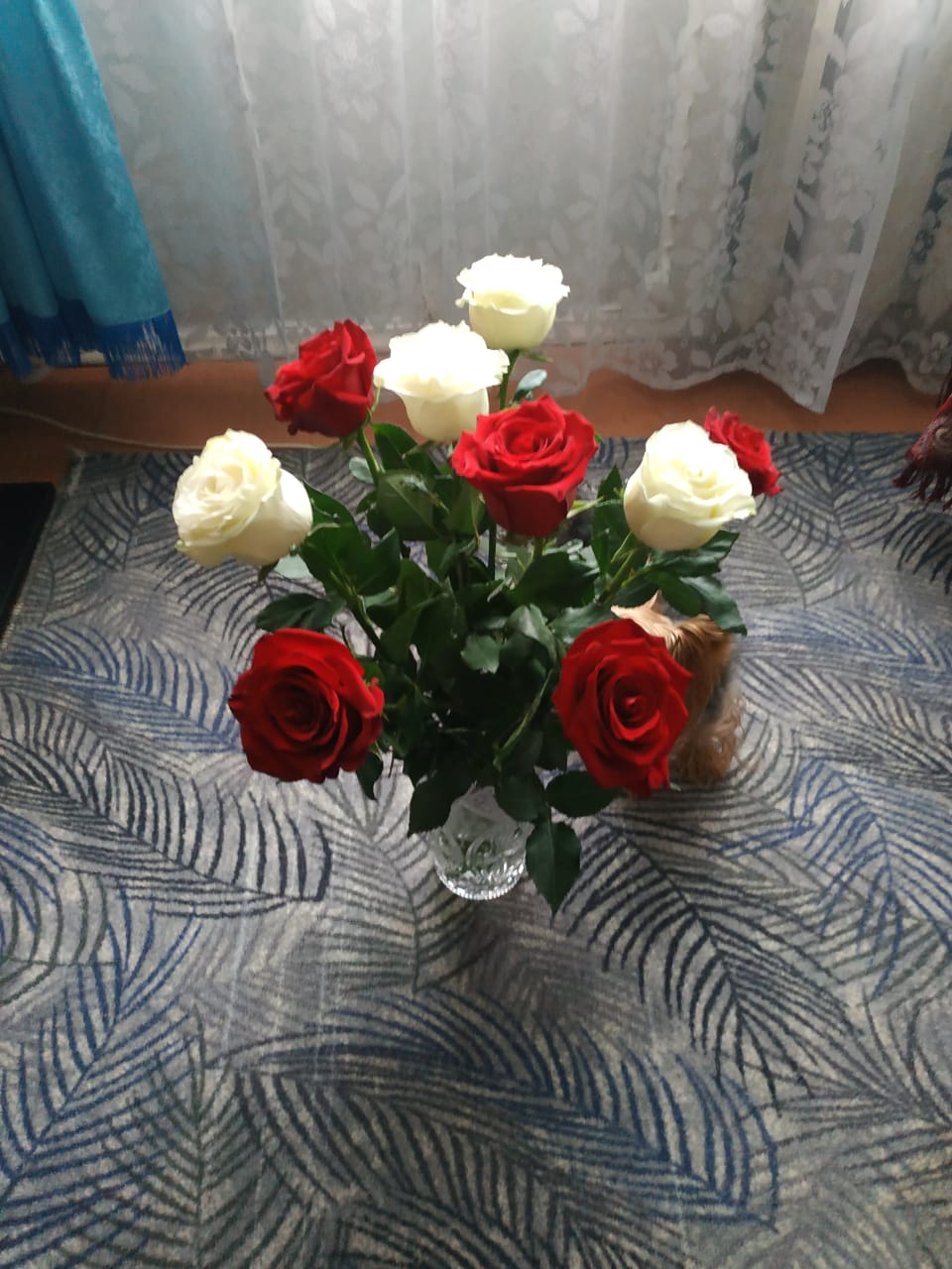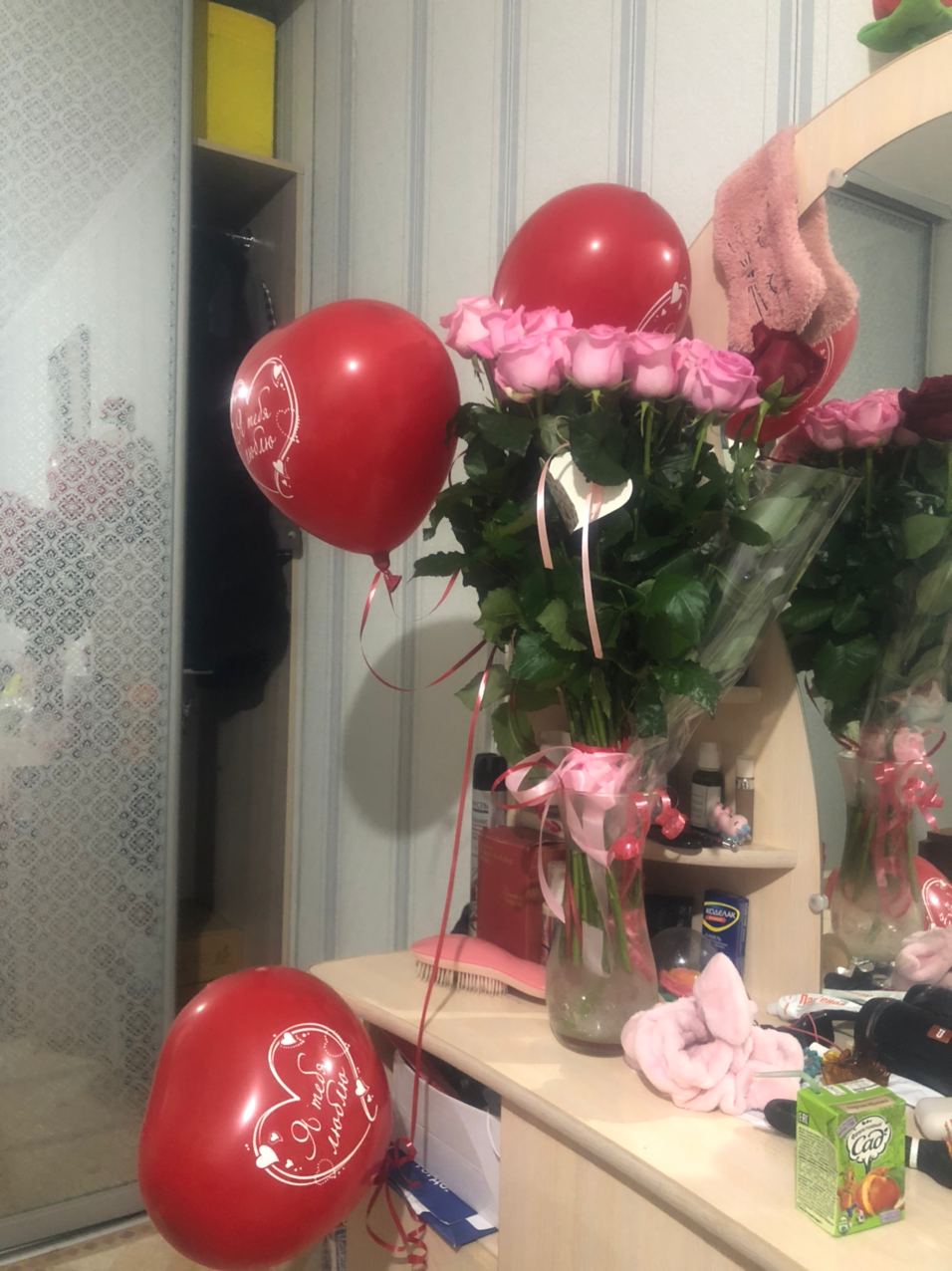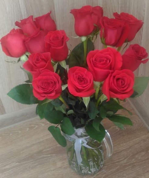 Я покупал букет из красных роз + метрового мишку. Честно говоря, меня мишка сильнее порадовал, поскольку я цветы не очень люблю, но и они были вроде красивые, на мой скверный оценочный взгляд.