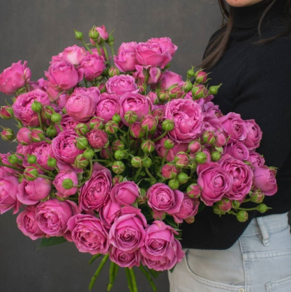 Сиренево-фиолетовые розы. Бутоны обладают шарообразной формой, поэтому отлично смотрятся в цветочной композиции.