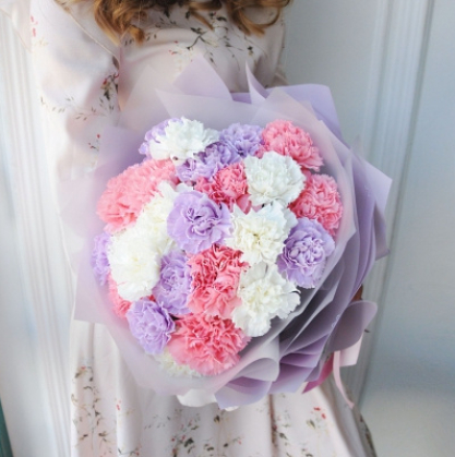 Прекрасный букет из диантусов в матовой упаковке.